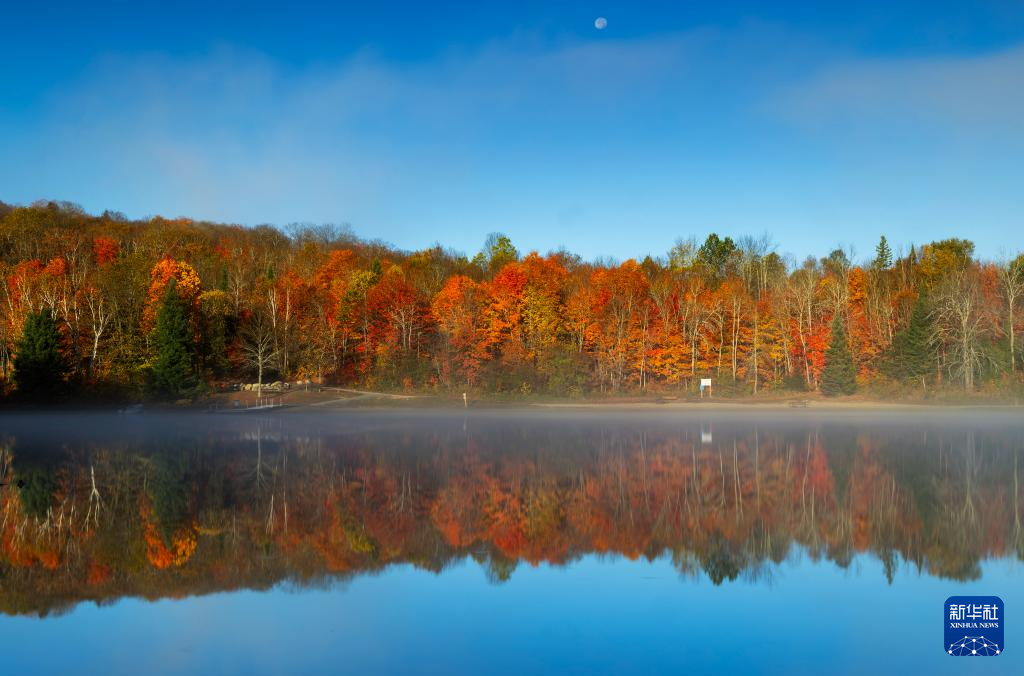 這是10月9日在加拿大安大略省亨茨維爾一處公園拍攝的秋色。