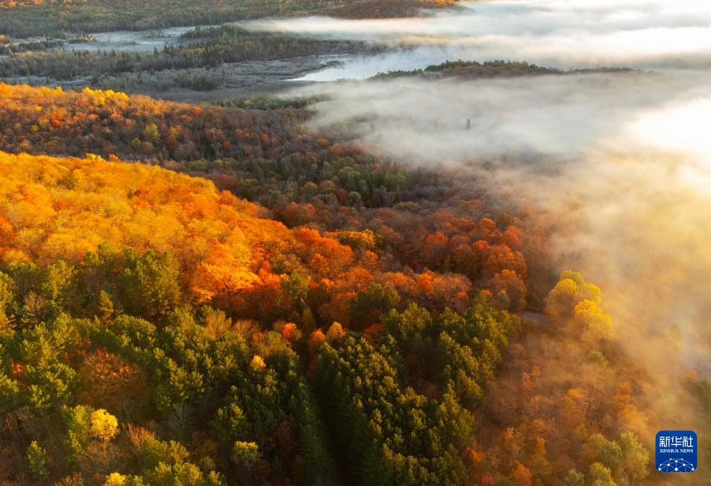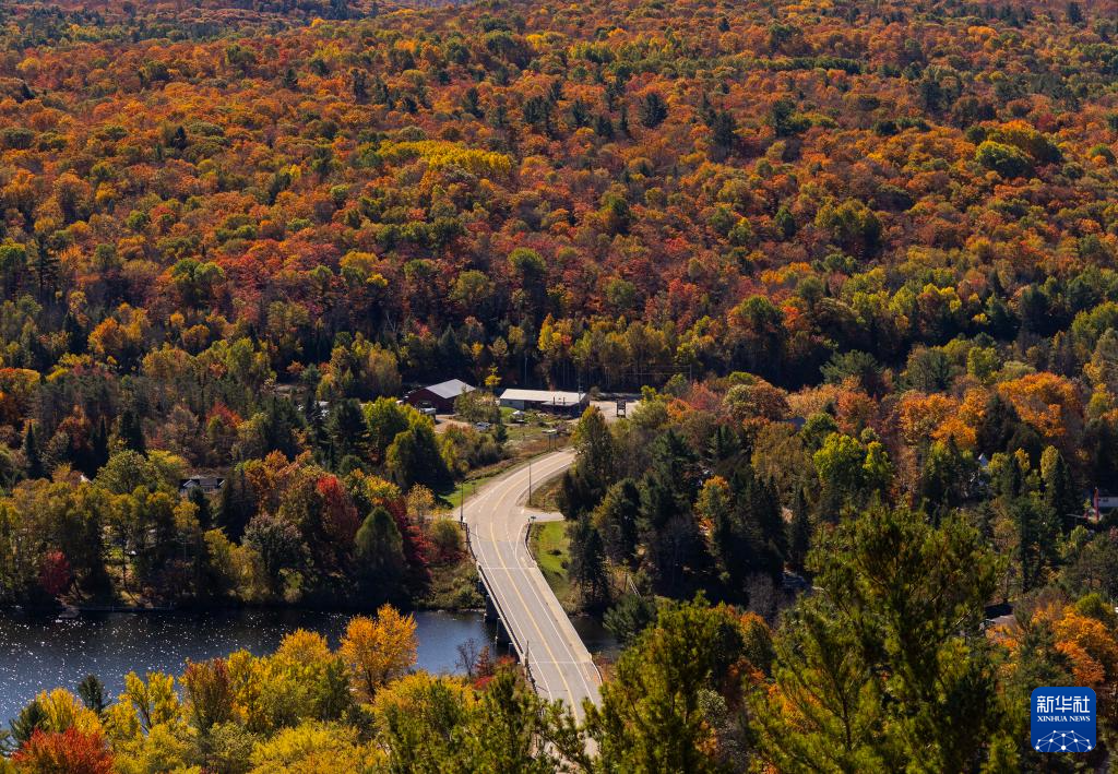 這是10月9日在加拿大安大略省亨茨維爾附近拍攝的秋色(無人機(jī)照片)。