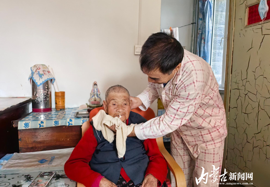 本網(wǎng)訊(草原云·正北方網(wǎng)記者 張巧珍)“母親養(yǎng)我們小,我們養(yǎng)她老,這是天經(jīng)地義的事?!?1月2日,家住呼和浩特市軍區(qū)勝利路小區(qū)101歲老人的小兒子范明根一邊給母親擦手一邊笑著說。這位走過一個世紀(jì)的老人名叫楊翠珍,出生于1924年,如今耳不聾眼不花,精神矍鑠,身后是4個兒子輪流守護(hù)、婆媳和睦、四世同堂的幸福畫卷。