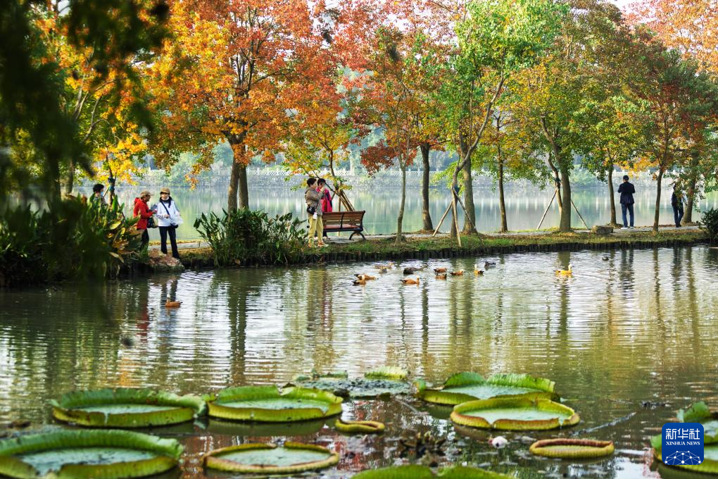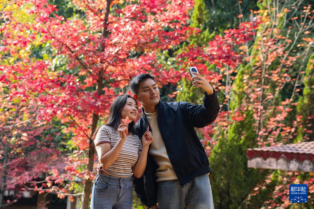 11月1日,游客在云南省昆明黑龍?zhí)豆珗@內(nèi)拍照打卡。