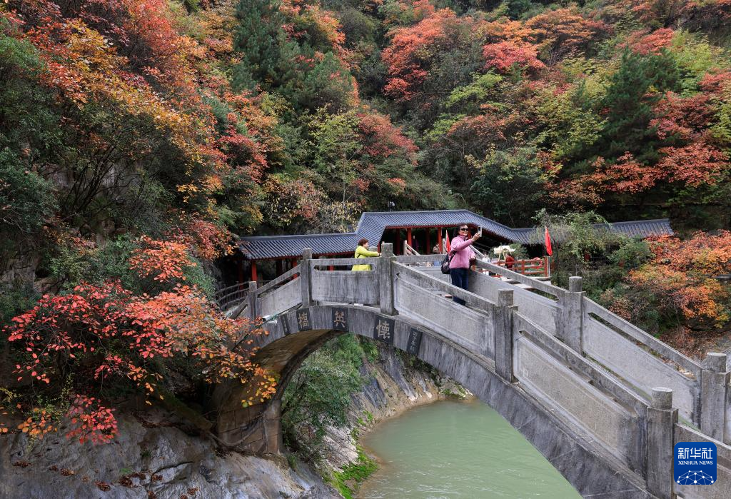 11月1日,游客在甘肅省隴南市成縣西狹頌風(fēng)景區(qū)欣賞秋日景色。