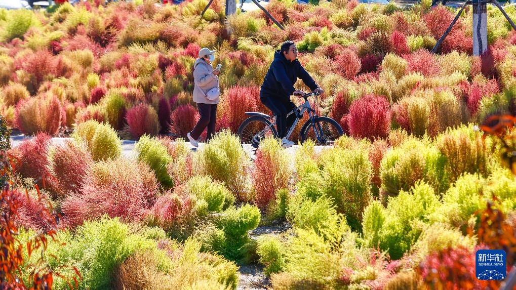 11月2日,游人在天津市濱海新區(qū)的白鷺洲公園賞秋游玩。