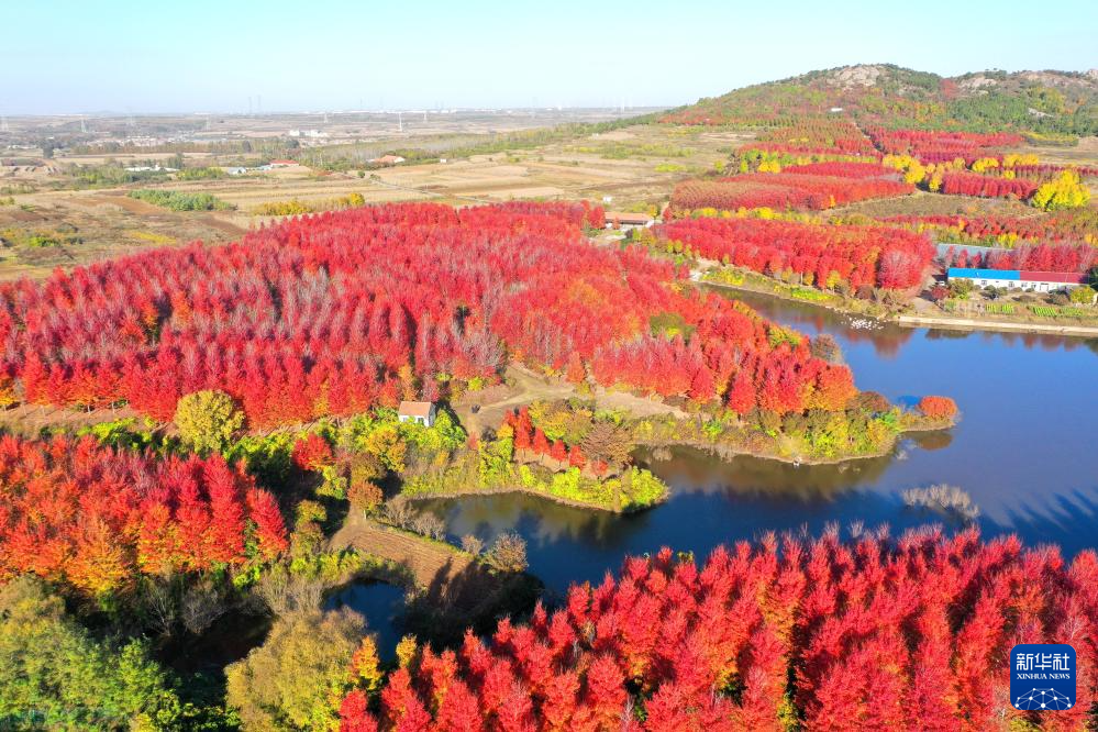 11月2日在山東省青島市即墨區(qū)金口鎮(zhèn)拍攝的楓樹林(無(wú)人機(jī)照片)。